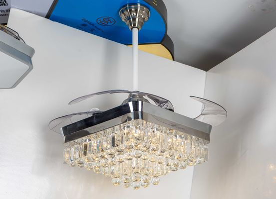 โคมไฟคริสตัล Silent LED 36W ไฟพัดลมเพดานแบบพับเก็บได้พร้อมใบมีดพับ